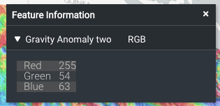 "featureInfoTemplate": "template": "Pixel colour: <b>Red={{#terria.formatNumber}}{maximumFractionDigits:3}{{Red}}{{/terria.formatNumber}}</b>."